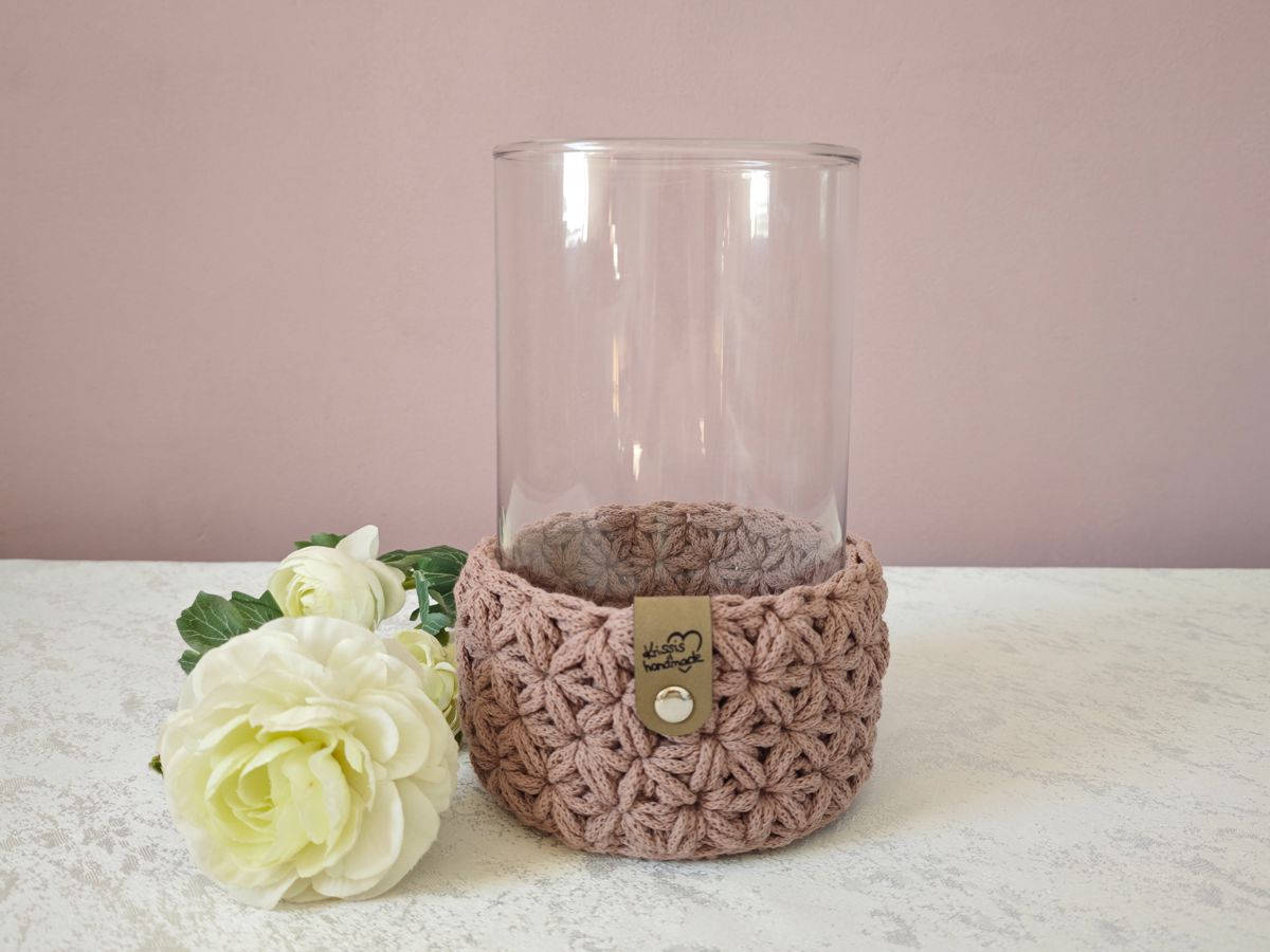 Wie diese Vase, die in dem wunderschönen Jasminmuster umhäkelt ist.
