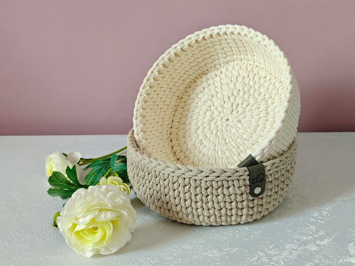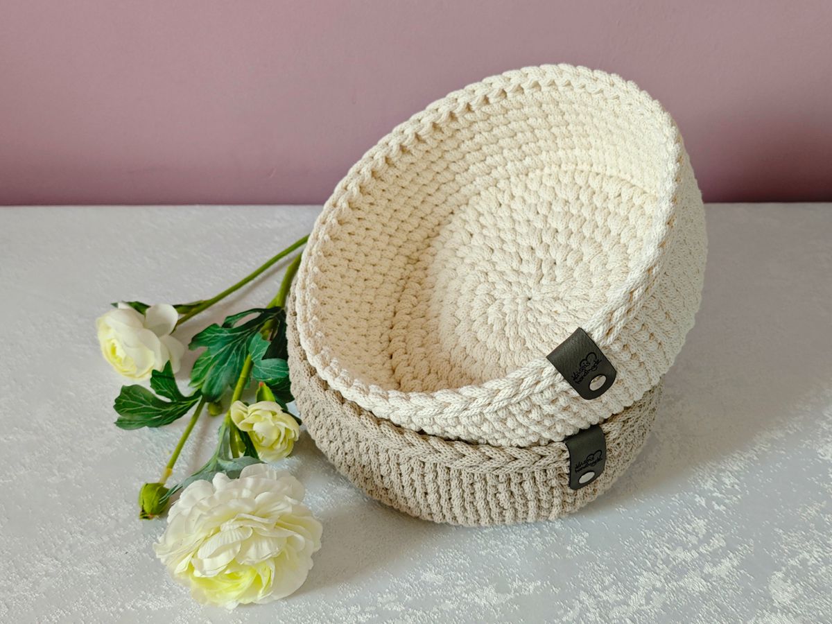 Dieser handgefertigte Brotkorb aus hochwertiger Bobbiny-Kordel misst ca. 23 cm x 9 cm und ist ein stilvolles Accessoire für dein Zuhause.