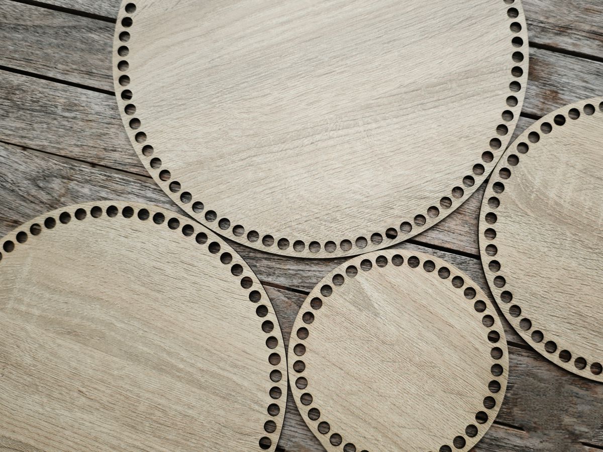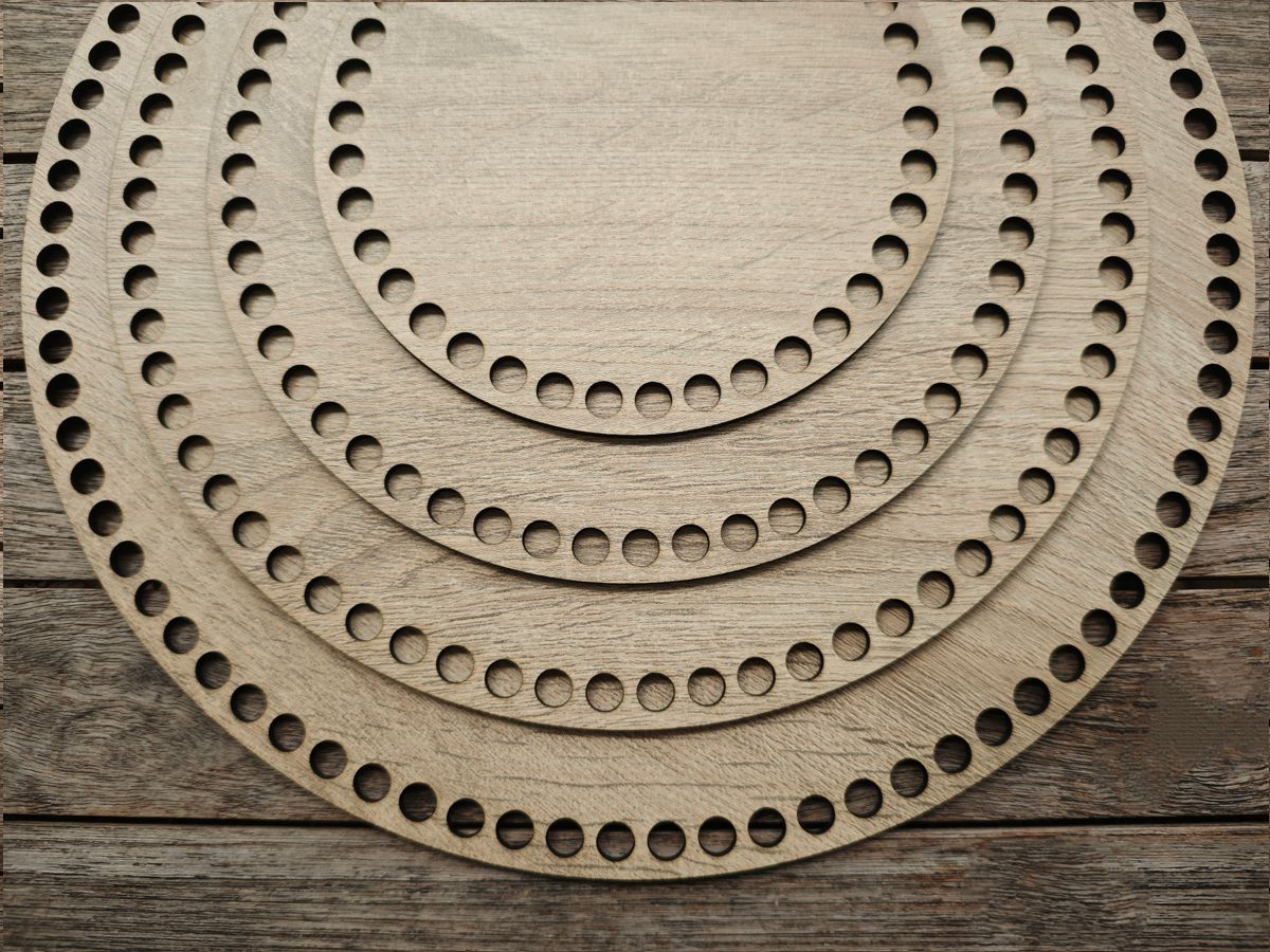 Diese Böden bestehen aus einer robusten, kunststoffbeschichteten Faserplatte und sind die ideale Basis für stabile und formschöne Häkelkörbe.