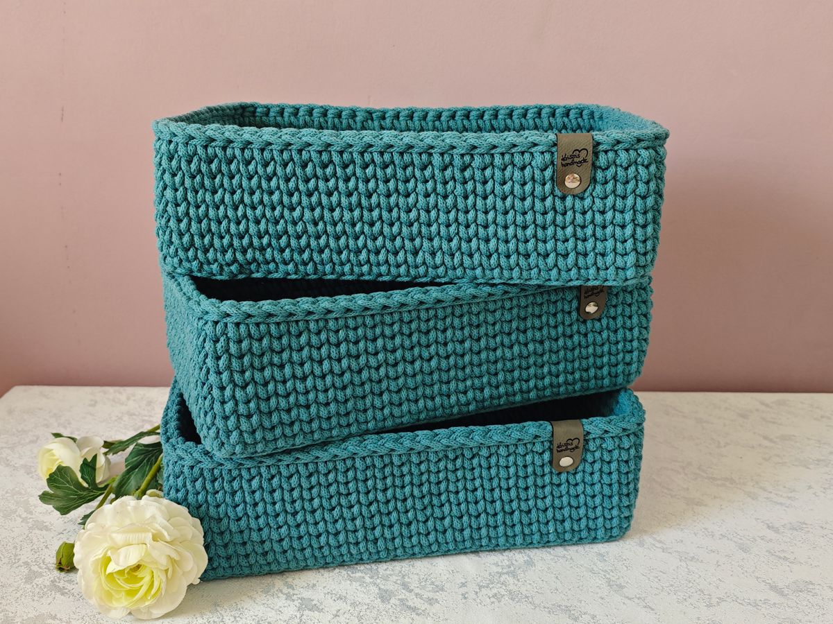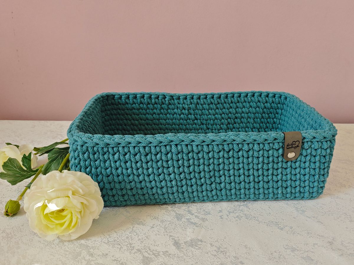 Der Korb wird aus hochwertigem Garn gehäkelt und mit einem passenden Holzboden versehen. So entsteht ein fester Stand und eine moderne, natürliche Optik.